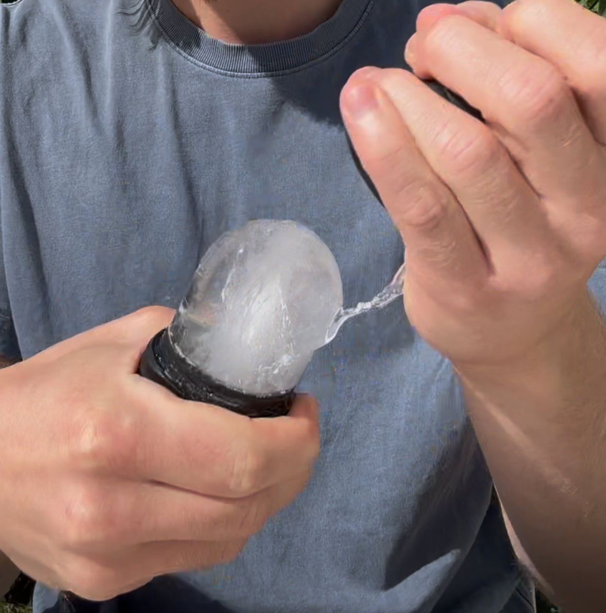 Let it thaw for a couple of minutes so the top can slide off easily. In a hurry? Just warm it gently in your hands🤲 or under the sink before sliding the top of.