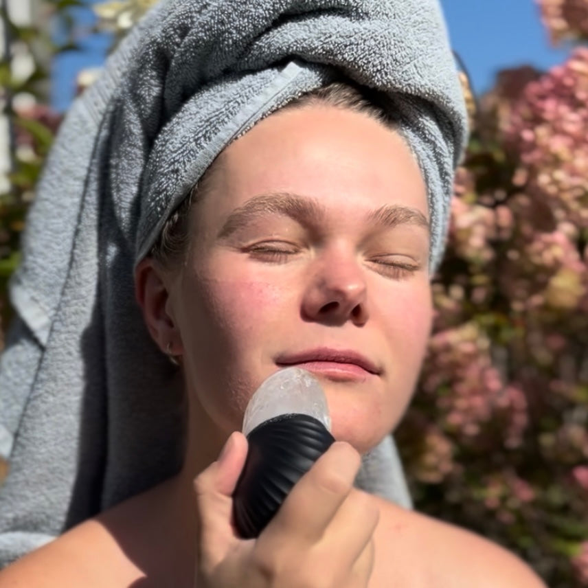 Gently glide the chilled globe across your face in upward, circular motions. Enjoy the refreshing massage while boosting circulation and glow. 💆♀️